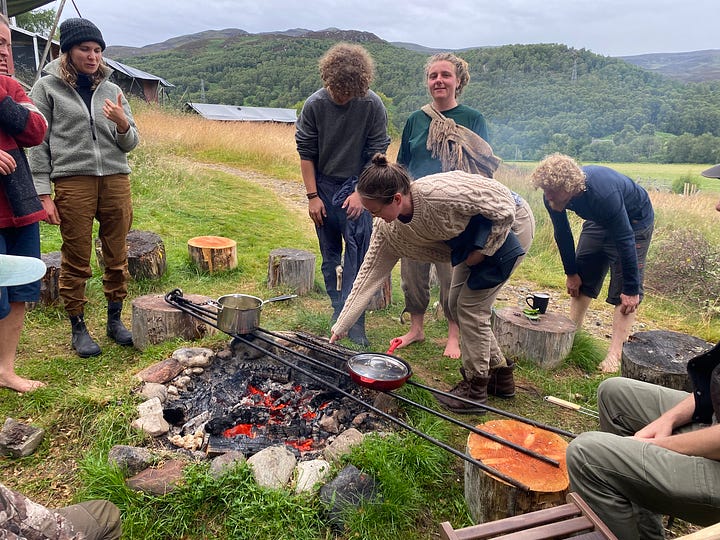 Aoife patterned the retreat with beautiful songs. Thanks to Sophie for finding and starting our tune, we eventually all joined the creative process adding our own observations and aspirations from the retreat. By the end, we had created a new song – woven together collaboratively, just like everything else. We sang it endlessly and during our last shared moments once our raft had long carried our love. I only later realized it had rooted itself within me: an earworm, yes, but also an embodied echo of my time in the Highlands.