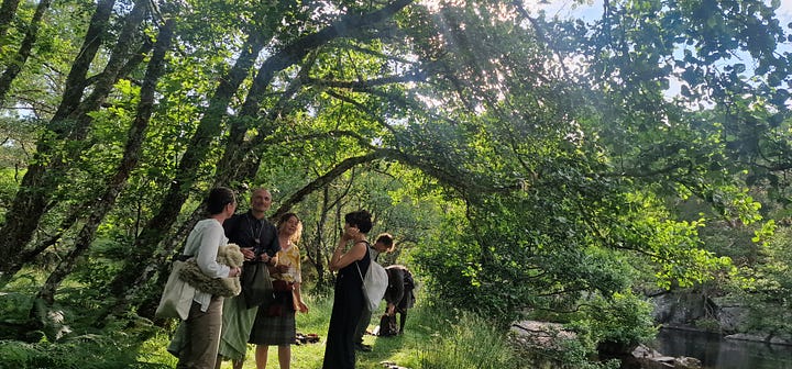 For this third and final post about my five days on the land for the Salmon of Wisdom retreat, I want to share how Aoife Lowden wove us together with her ceremonial touch, complementing what both Michael and Dougie brought in parts one and two of this retreat reflection.