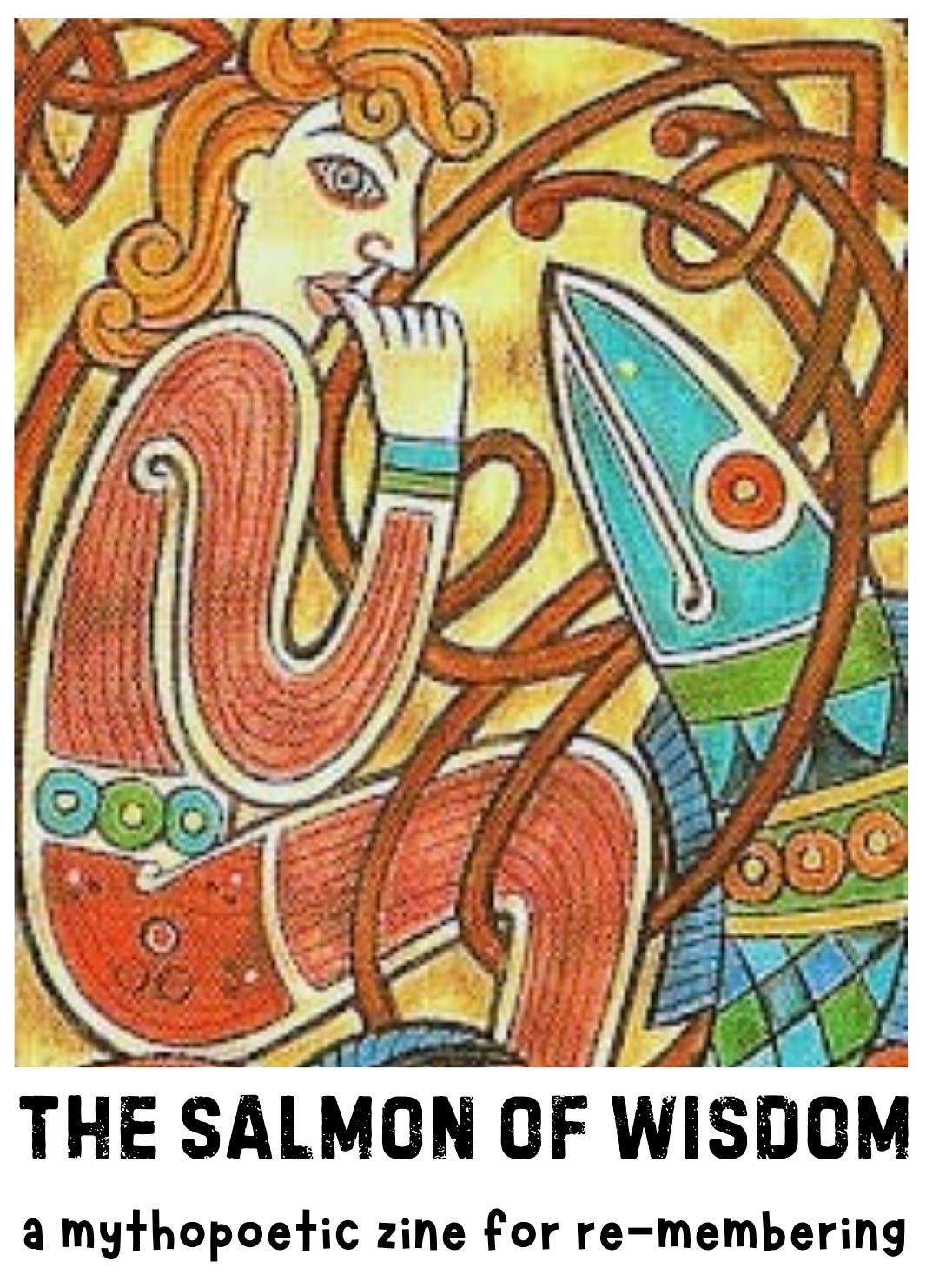 This year marks my third year with a tent space at the event. My first time was a chance to show off some of the salmon and kinship craft I made along with a sensory salmon activity. Last year I organized a Sing Back the Salmon experience where a dozen people braided song, gratitude, grief, and humble presence on the riverbank. I also created and distributed 100 zines (little magazines) to accompany this special with-nessing. This year I am retelling the tale of the Salmon of Wisdom — a Celtic myth awakening ancestral echoes and land-informed ethical relations. I’ve also made a zine to accompany this experience with some key quotes and prompts to ponder.